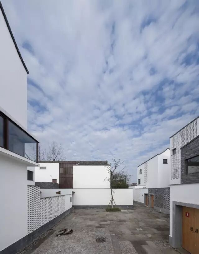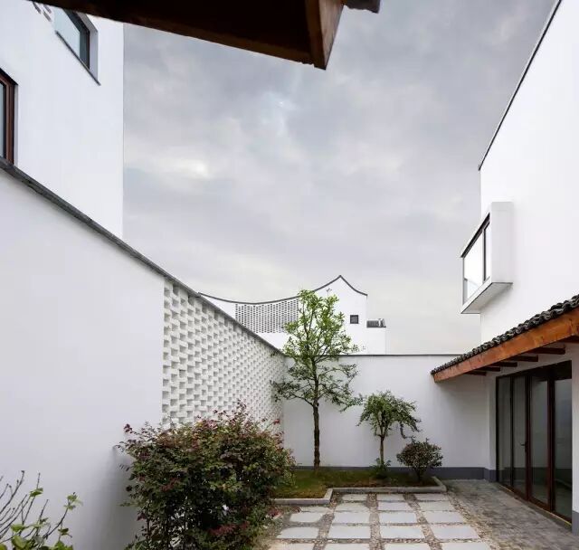 在虚实关系的营造上,外墙以实面为主,朝向院落的界面以半虚及玻璃为主,既保证了采光需要,又能形成内向感。